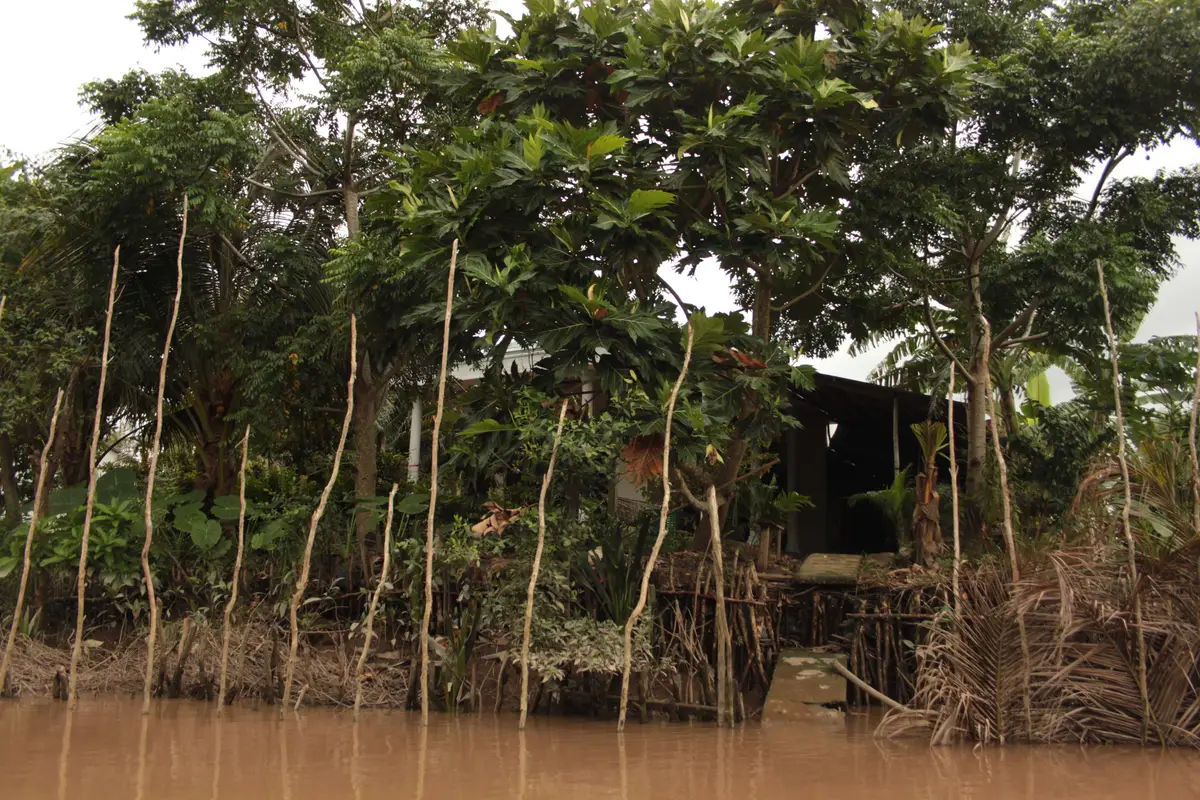 Gdy dotarliśmy do miasta Vinh Long, domy przy brzegu rzeki wydawały się jeszcze skromniejsze – pozbawione podwyższeń na palach, a ich parterowe części były regularnie zalewane przez wodę, co o tej porze roku stanowiło zupełnie normalne zjawisko.